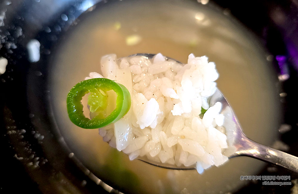 시원하고 칼칼한 국물에 밥을 말아 청양고추 한 조각과 함께 든든하게 마무리했습니다.