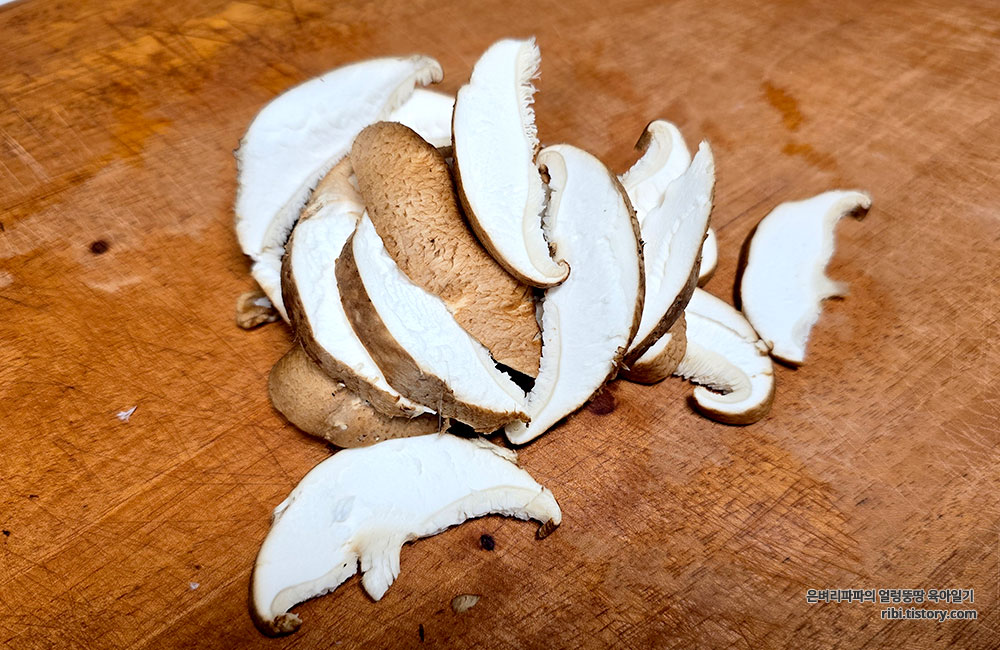 표고버섯과 고추, 대파도 썰어 준비합니다.