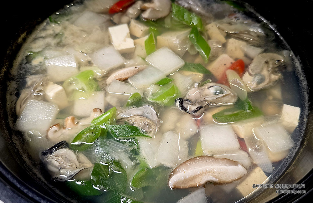 굴은 오래 끓이면 질겨지니 마지막에 넣는 것이 포인트예요.