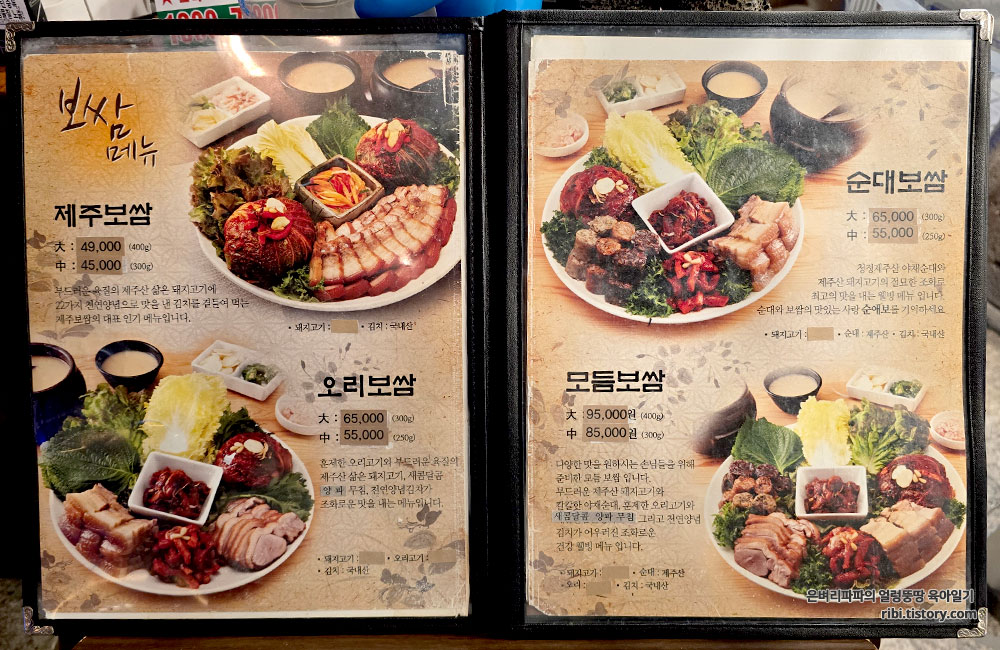 메뉴판을 보니 오리지널 제주보쌈, 순대보쌈, 모둠보쌈 등