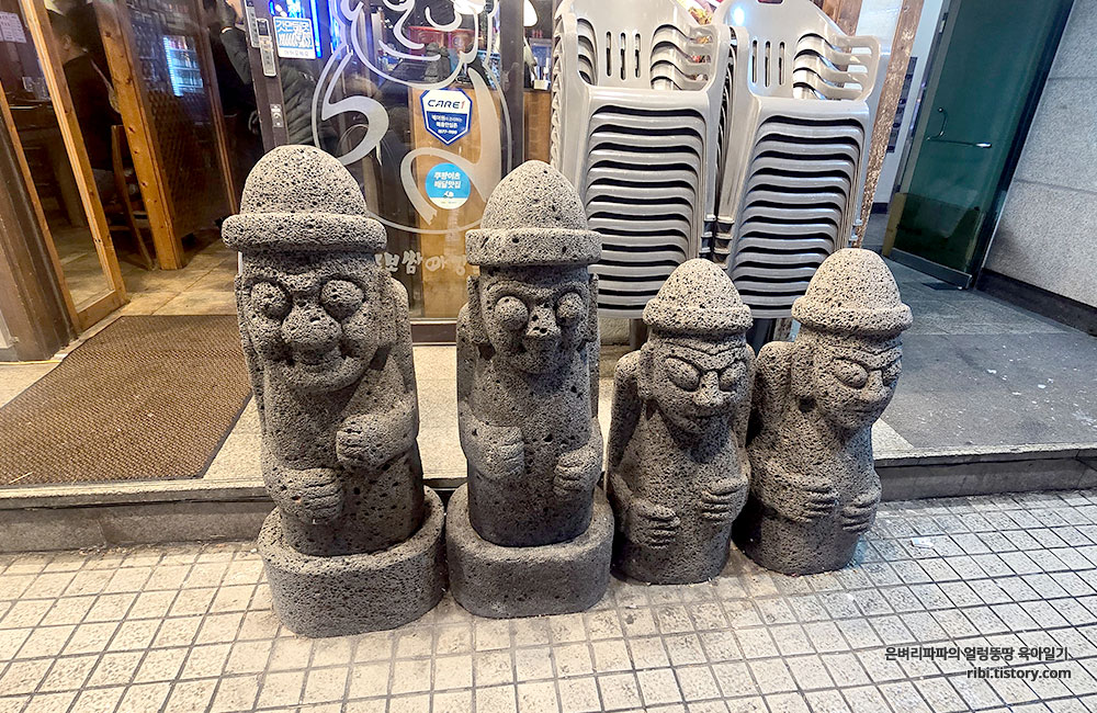식당 입구에 서 있는 정겨운 돌하르방과