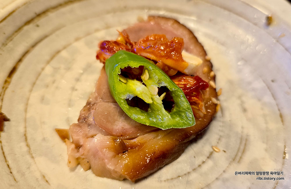 알싸한 청양고추 슬라이스와 마늘을 곁들여 먹으니 환상의 궁합이었습니다.