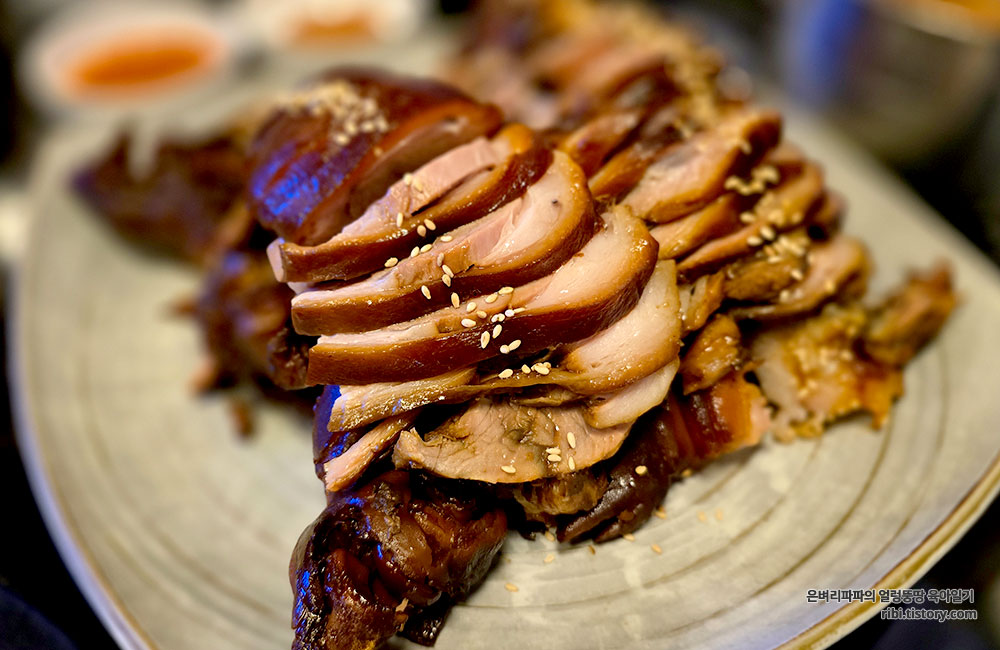 썰리 족발 위에 솔솔 뿌려진 깨와 고소한 냄새가