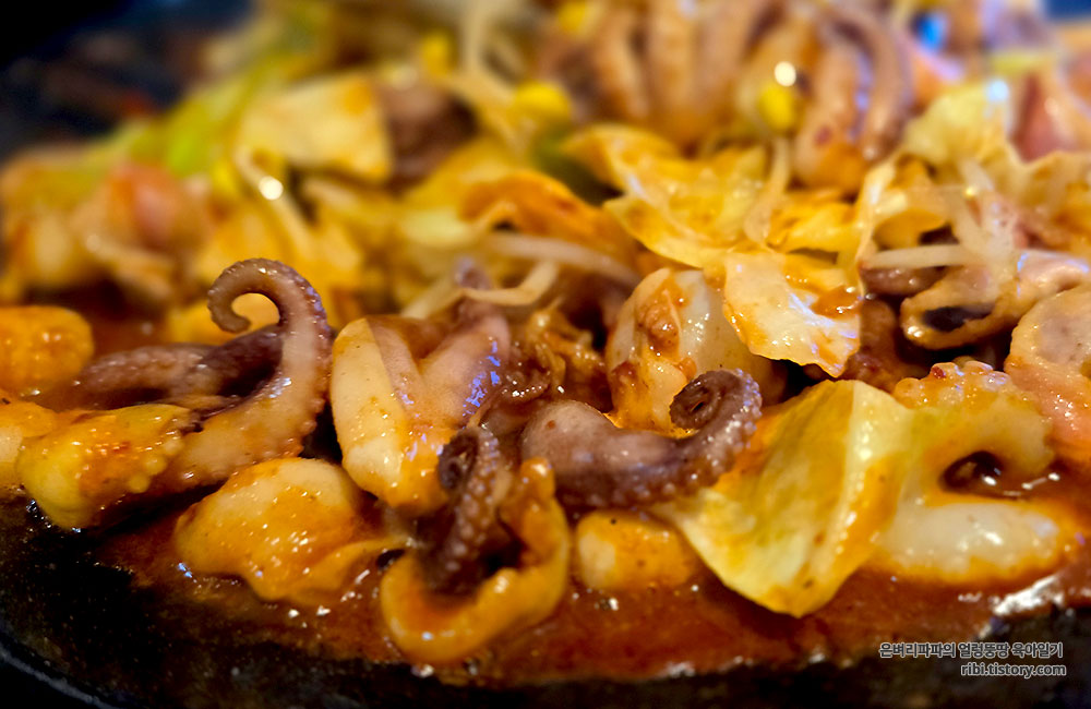 매콤한 양념들이 배어들고, 지글지글 익어 갈 때 나는 불향이 정말 침샘을 자극했습니다.