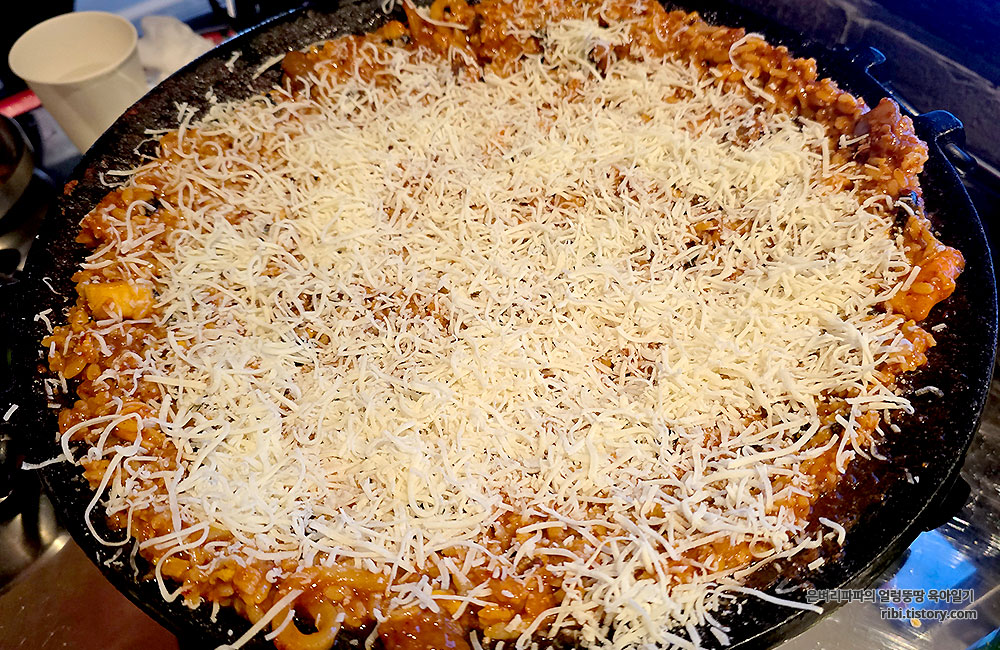 그 위에 치즈를 아낌없이 소복하게 뿌려져 나왔습니다.