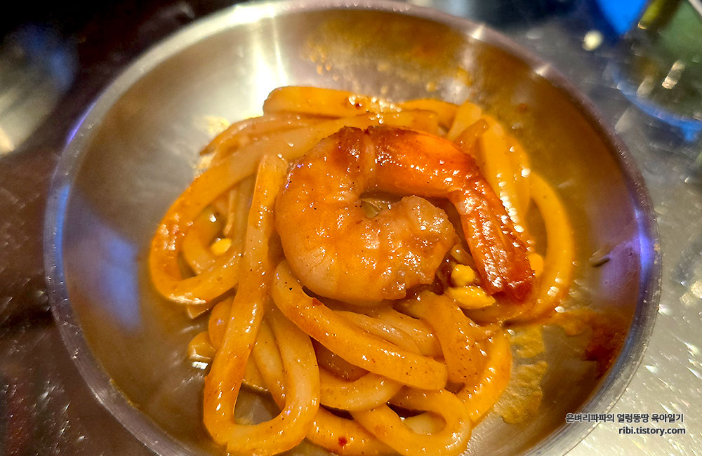 그리고 새우와 주꾸미, 우삼겹을 한 번에 집어 먹어 봅니다.