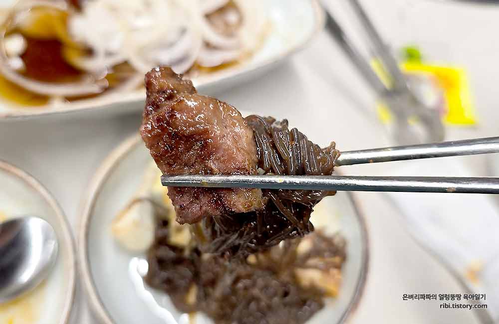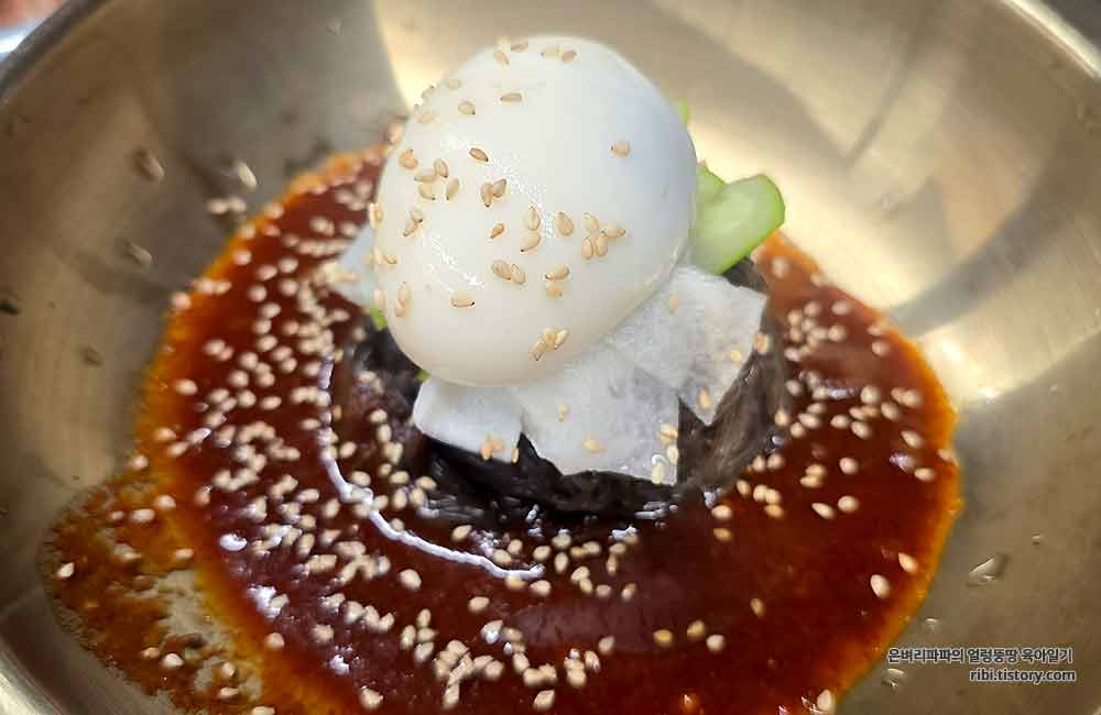 역시 비빔냉면에는 단짠단짠의 돼지갈비 궁합이 최고죠~