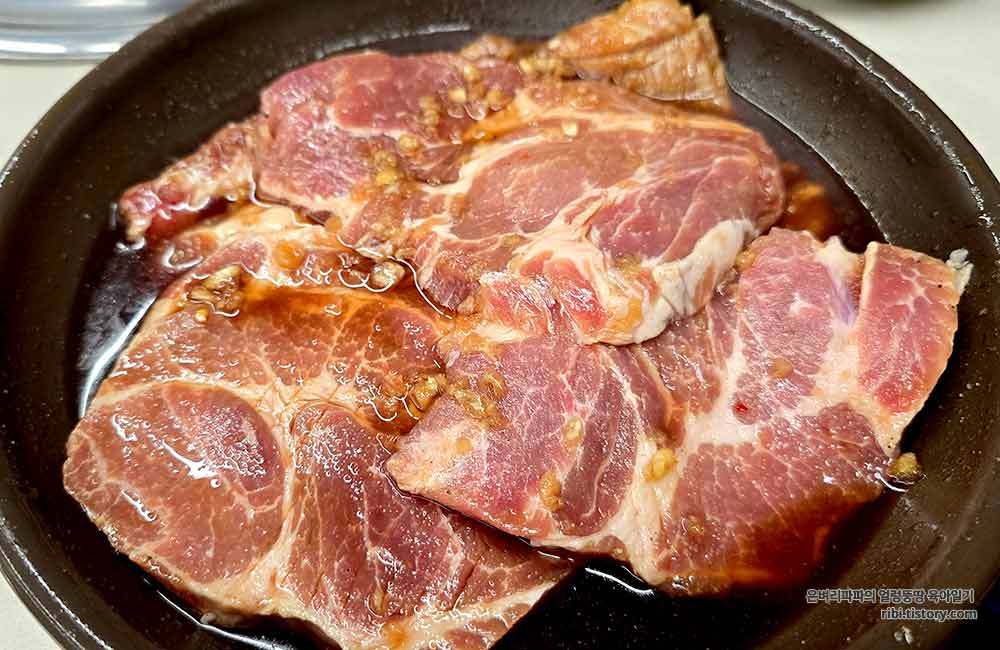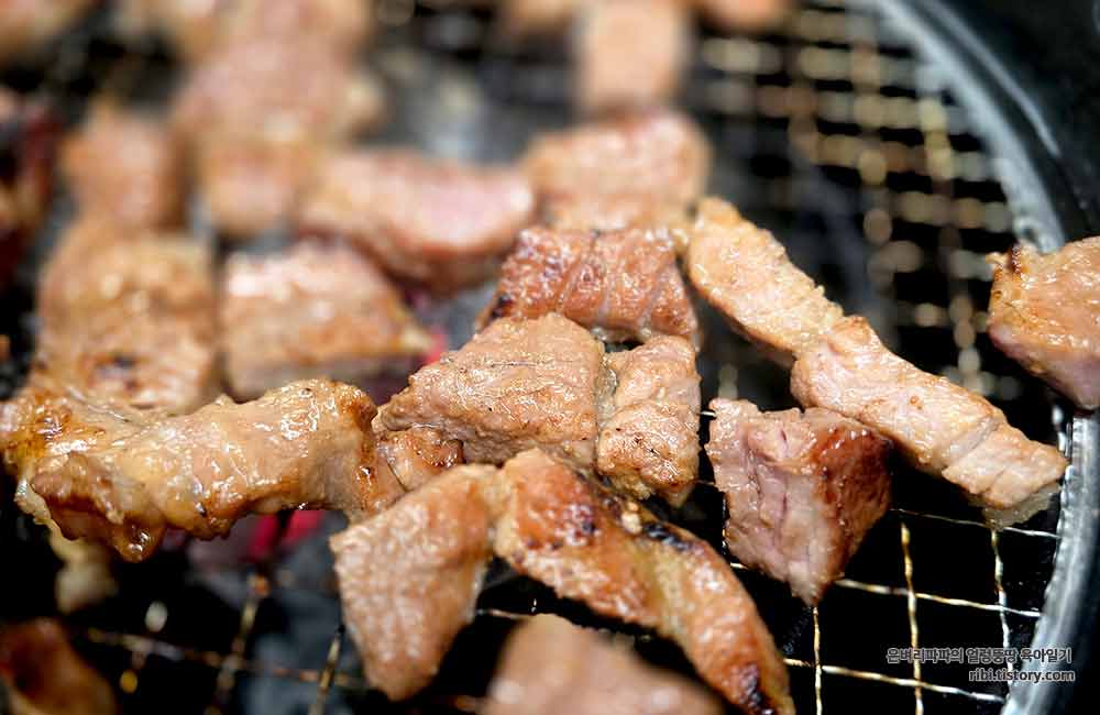 삼겹살용 불판을 올려주시면서, 돼지갈비를 먹을 때는 불판 교체를 꼭 말해달라 하시며 가시네요.
