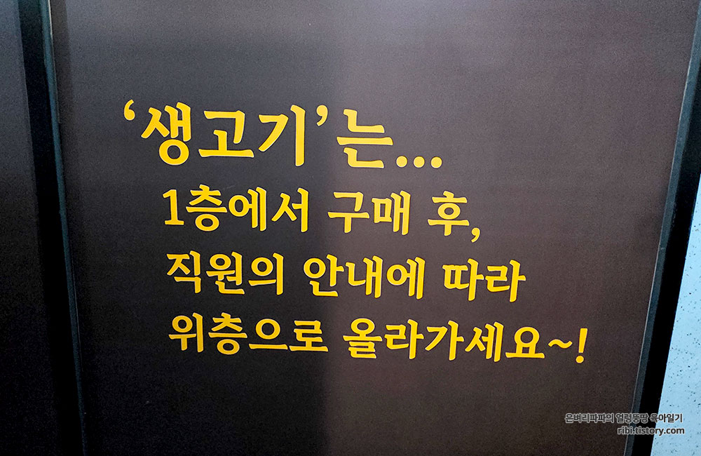 1층은 주로 생고기 한우를 직접 골라서 2층으로 올라가는 것 같아요.