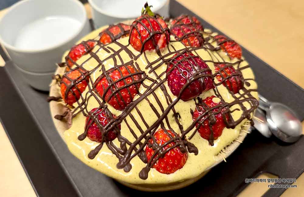딸아이가 주문한 빙수는 "두바이 초콜릿 딸기 빙수"입니다.