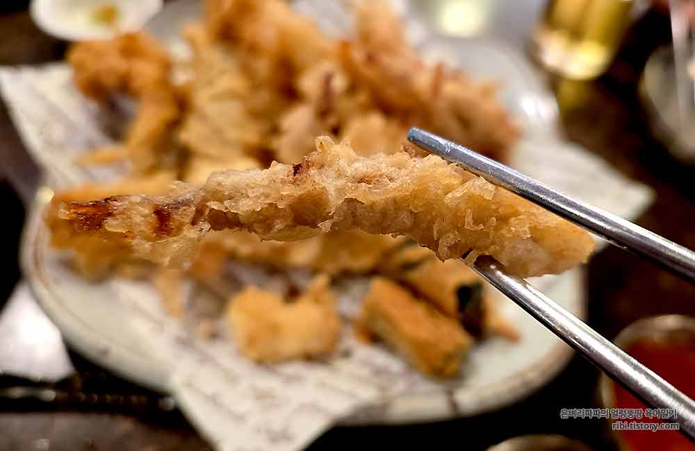 흔히 먹던 얇은 튀김과는 차원이 다른,