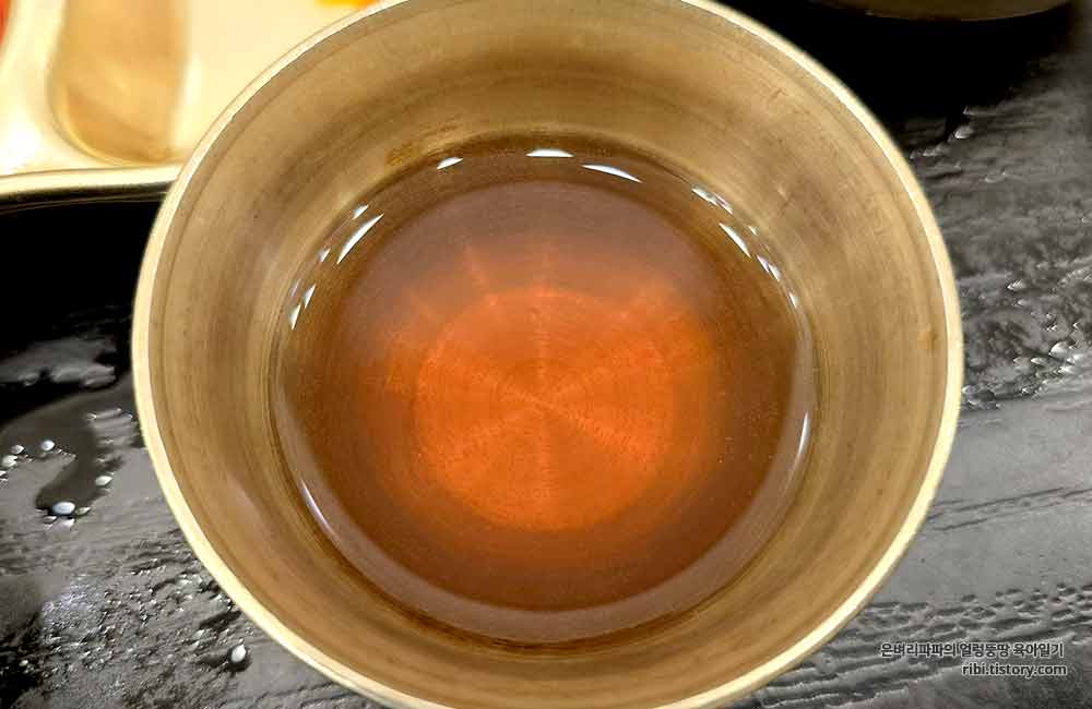 함께 나온 젓갈을 올려먹고, 입가심하기 딱 좋은 매실차로 식사를 마무리했어요.