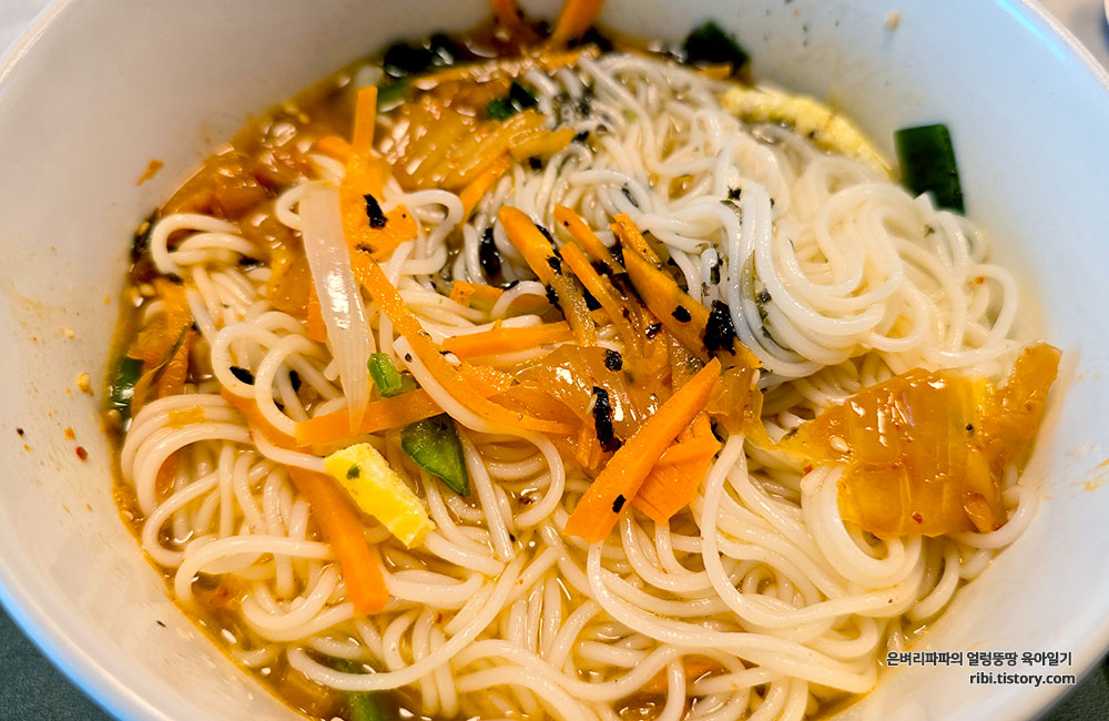 대신 즉흥적으로 잔치국수를 만들어 먹었습니다.