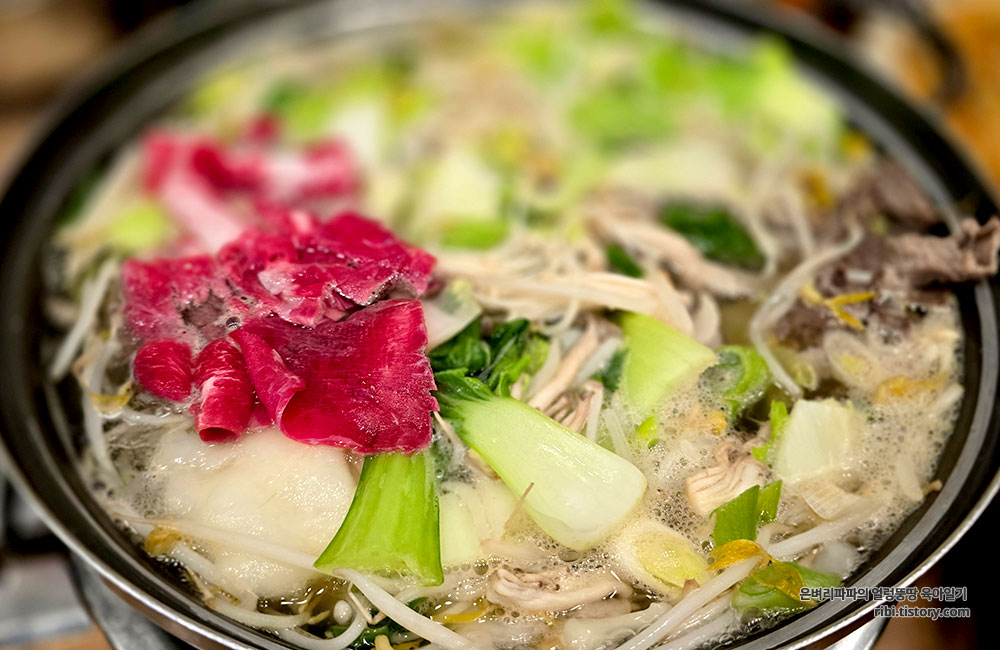 보통 샤부샤부는 고기 육수를 많이 쓰는데, 이곳은 바지락이 듬뿍 들어간 육수를 베이스로 합니다.