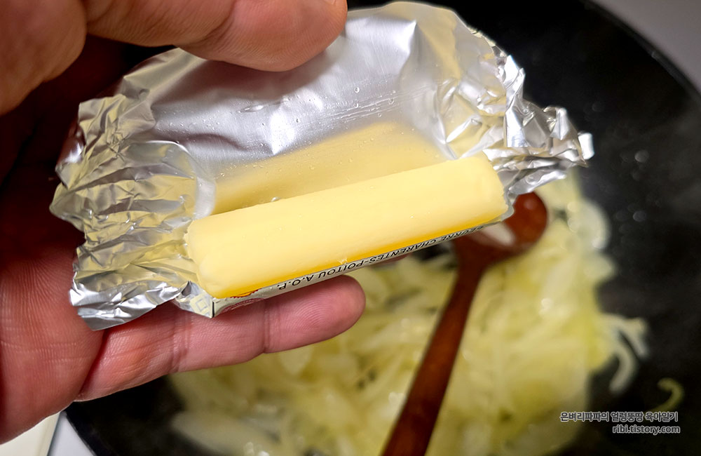 요기에 고소한 버터 한 조각을 추가했더니 집안 가득 맛있는 냄새가 진동하네요.