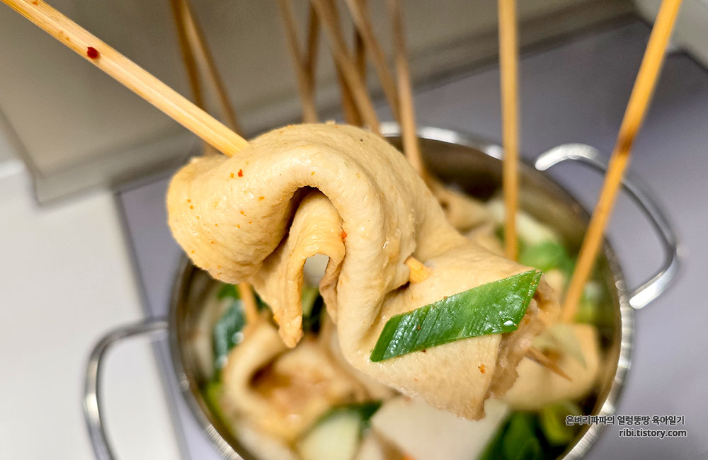 아이들과 함께 재미있게 꼬치를 끼워 매콤한 어묵탕 한 그릇 어떠신가요?