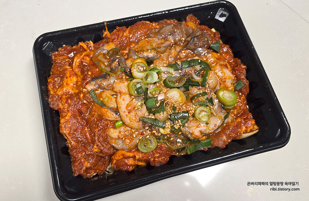 처음 포장을 뜯었을때 양녀된 불고기와 싱싱한 낙지가 들어 있어