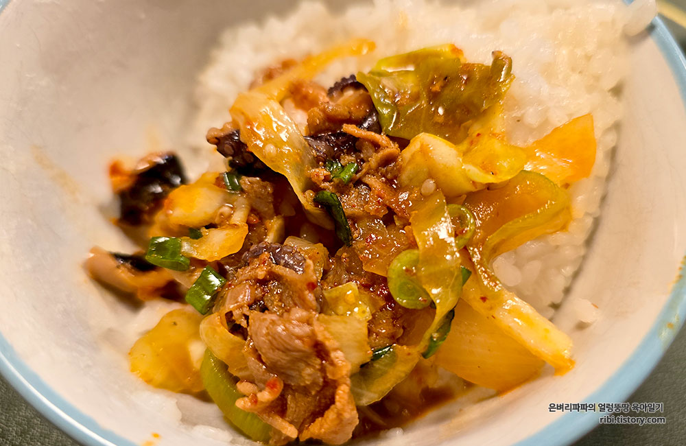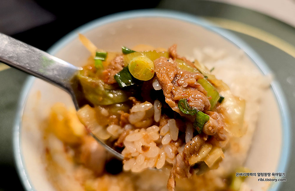 슥슥 비벼 먹는것으로 공깃밥 한 그릇 거뜬히 비웠습니다.