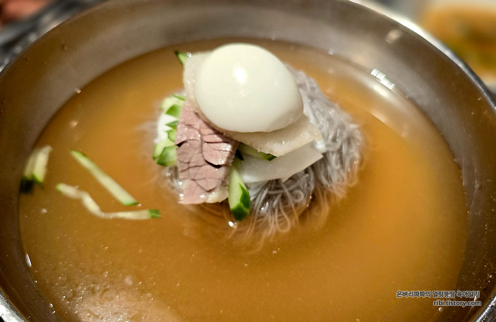 냉면의 면발이 얇아서 먹기에도 좋고,