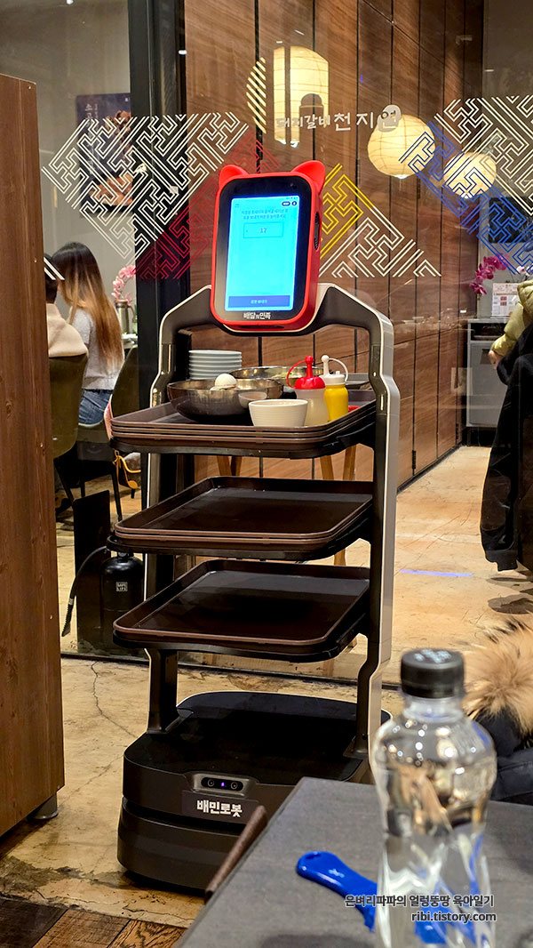로봇이 서빙하고, 전담 직원분께서 테이블에 놓아주시니,