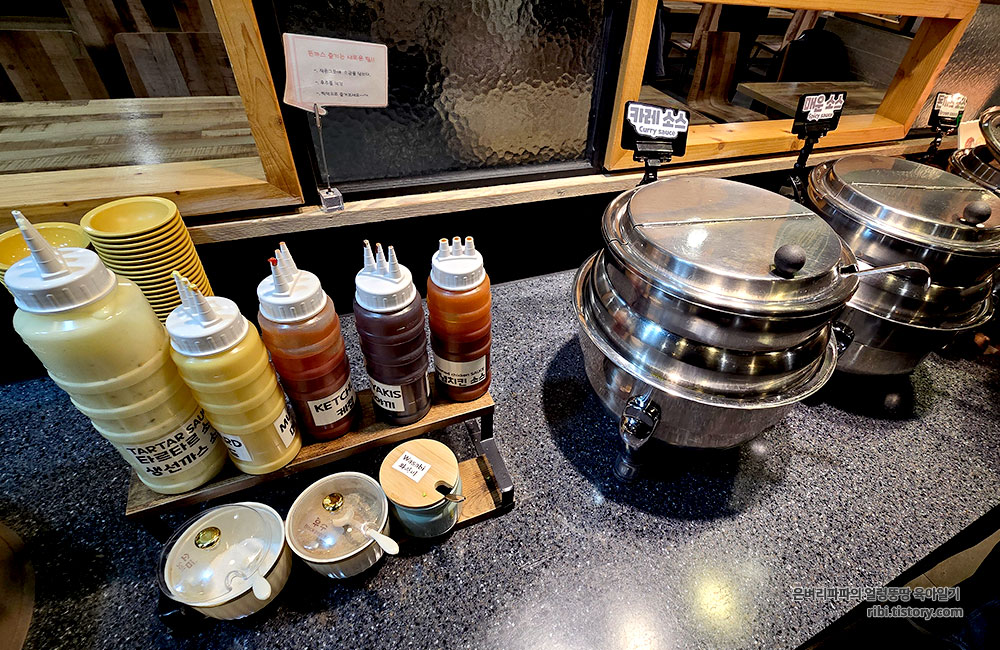 돈가스와 어울리는 샐러드부터 함박스테이크와 돈가스는 물론 각종 소스까지 구비되어 있어