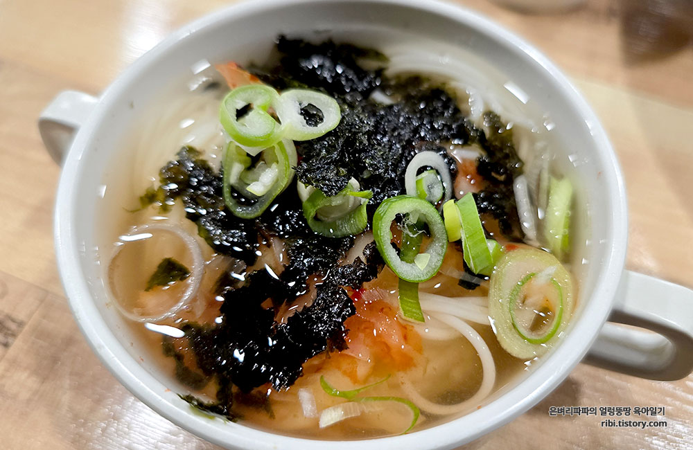 먹성 좋은 아들 녀석은 뜨끈한 멸치육수의 잔치국수를 두 번이나 가져다 먹었습니다.
