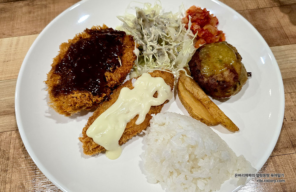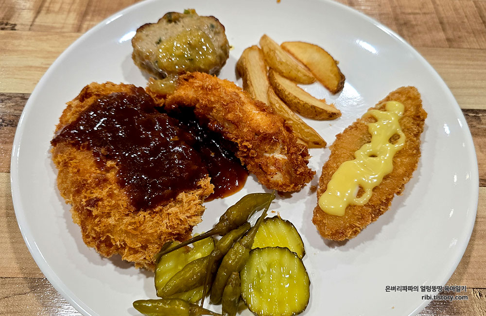 13,000원으로 다양한 돈가스와 사이드 음식을 배부르게 먹었으니