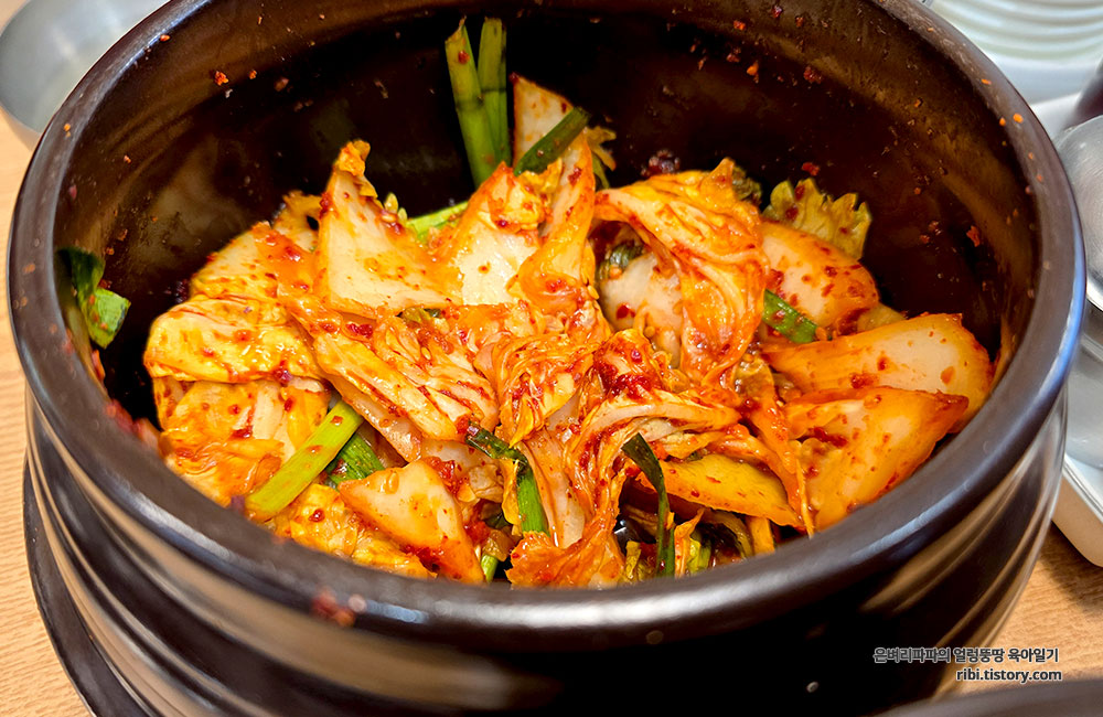 곁들여 나온 아삭한 겉절이와 시원한 동치미는 환상적인 궁합을 자랑합니다.