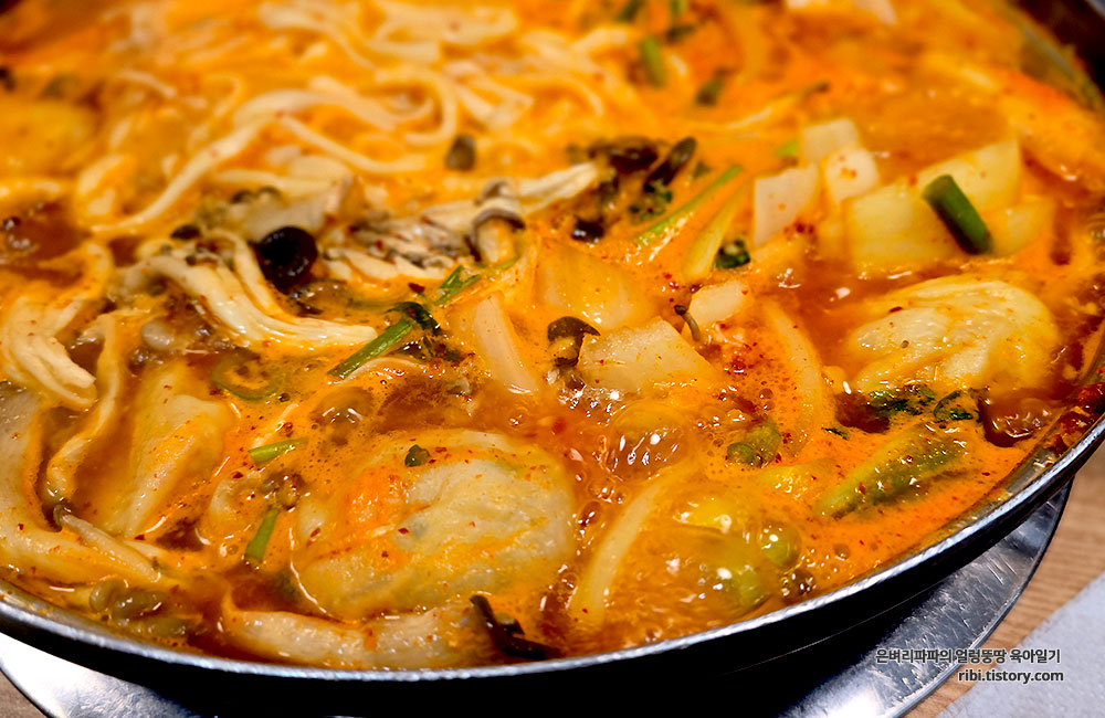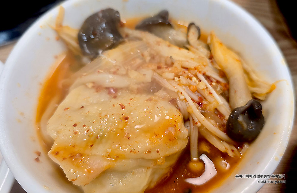 우리가 주문한 버섯 매운 칼국수입니다.