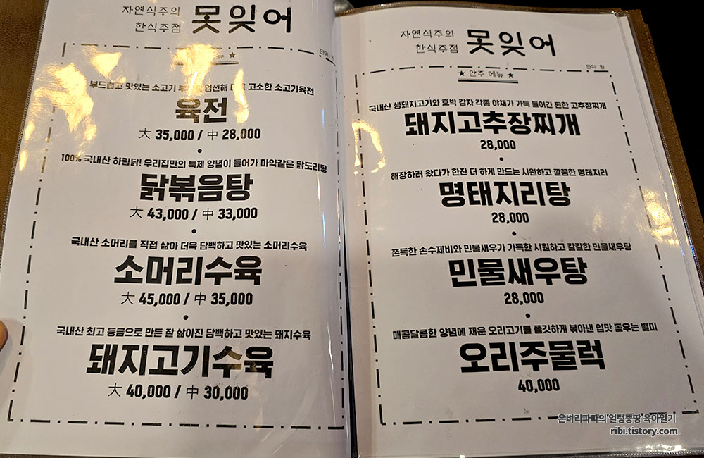 선릉역 근처 자연식주의 한식주점 '못잊어'를 추천드립니다.