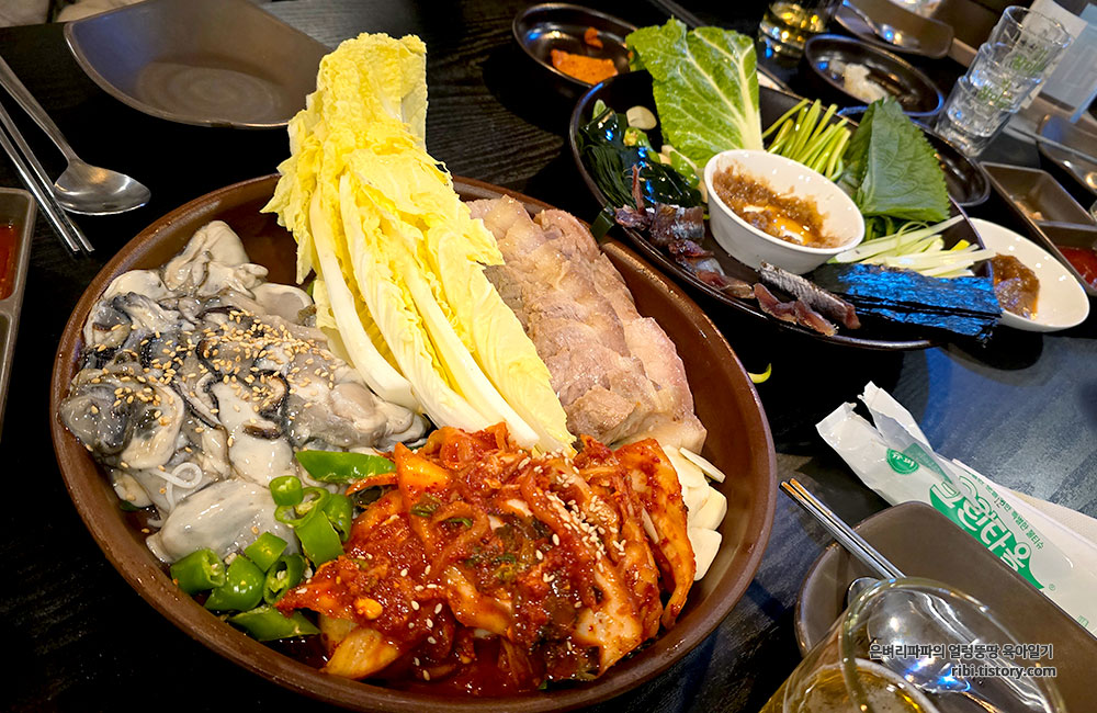 탱글탱글한 석화와 야들야들하게 잘 삶아진 수육의 만남!