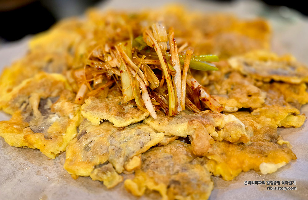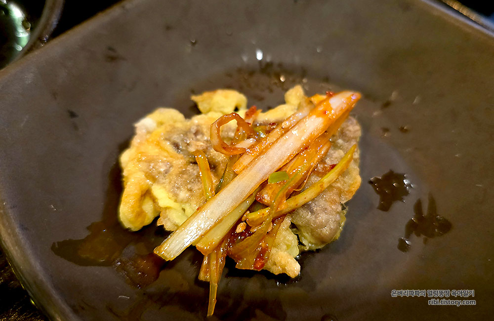 함께 나온 파채를 곁들이면 느끼함은 사라지고 감칠맛만 남습니다.