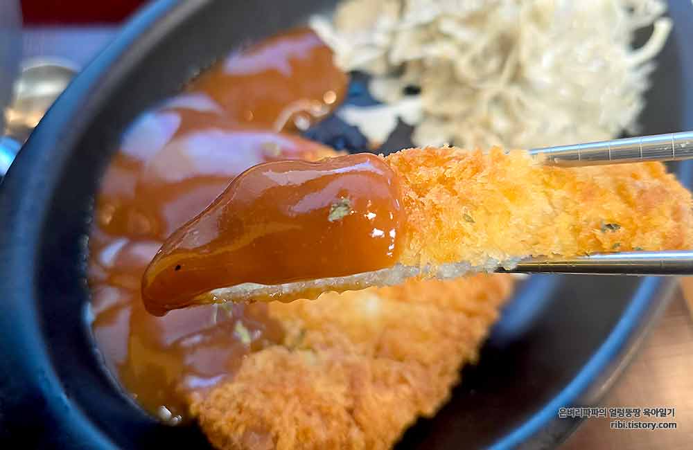 전문점 못지않게 바삭한 튀김옷과 두툼한 고기, 그리고 달짝지근한 소스가