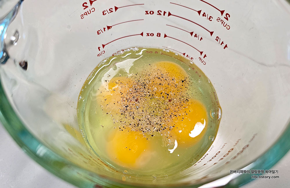 계란을 깨트려 소금과 후추로 간을 하고,
