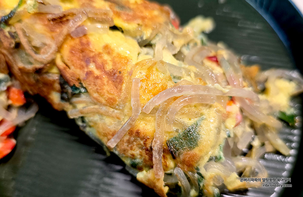 초기 불조절 실패로 살짝 타버린 당면 계란말이입니다.