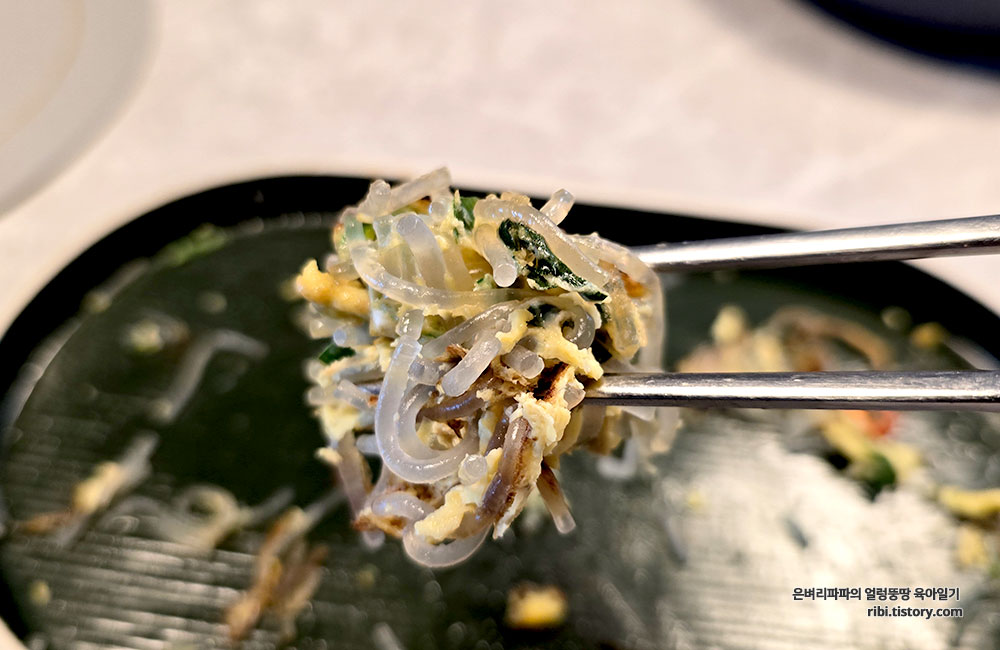 보들보들한 계란 사이로 당면이 탱글탱글하게 씹히는 식감이 예술입니다.