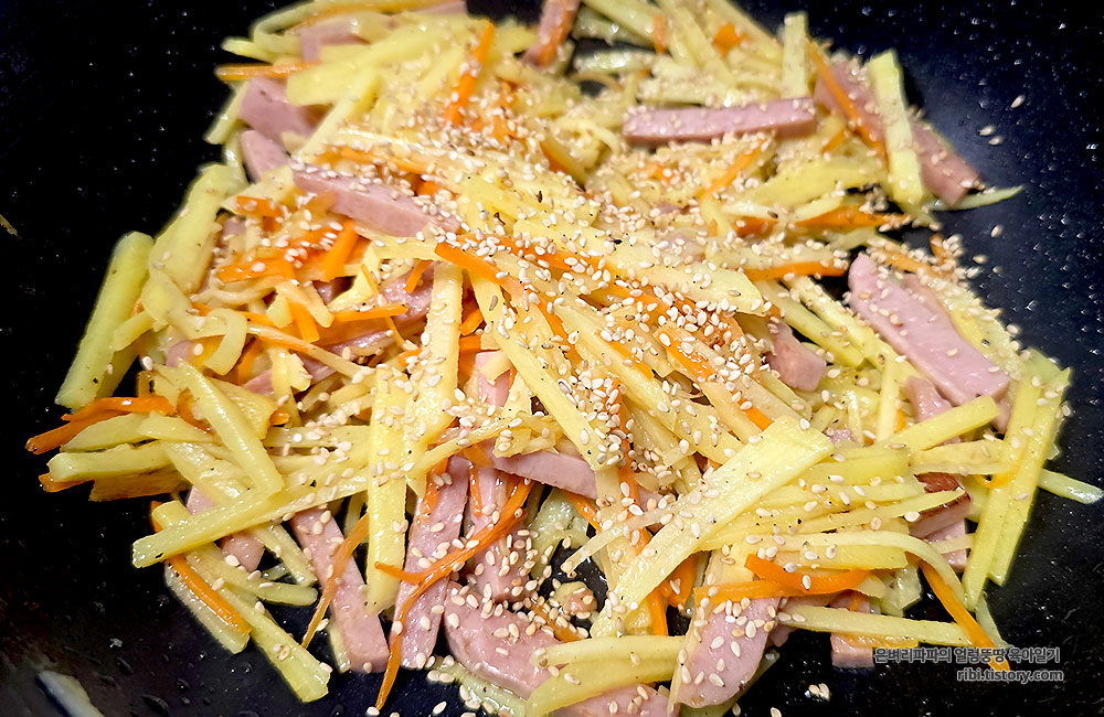 재료 : 감자, 당근, 스팸, 소금, 후추, 참깨, 올리브유