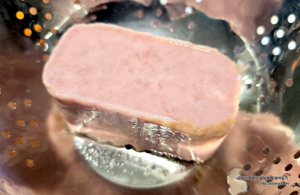 스팸은 깡통에서 꺼내어 뜨거운 물로 샤워 한번 시켜주거나