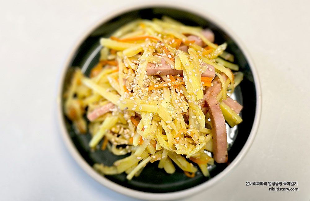부서지지 않고 떡지지 않는 10분 완성, 스팸 감자채볶음~!