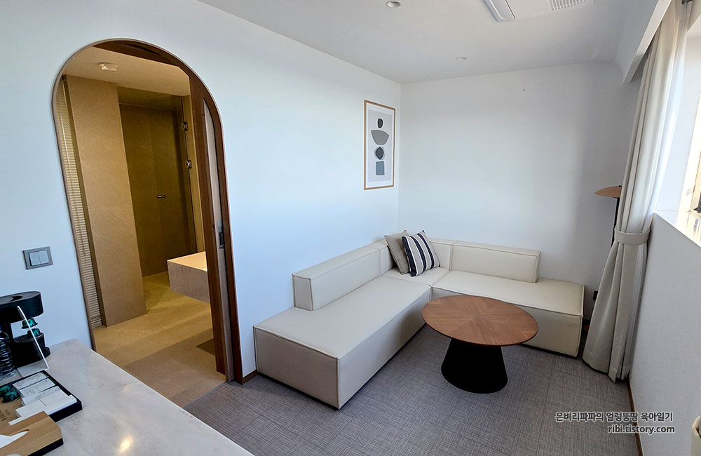 객실에 들어서자마자 펼쳐지는 파노라마 오션뷰가 정말 압도적이었습니다.