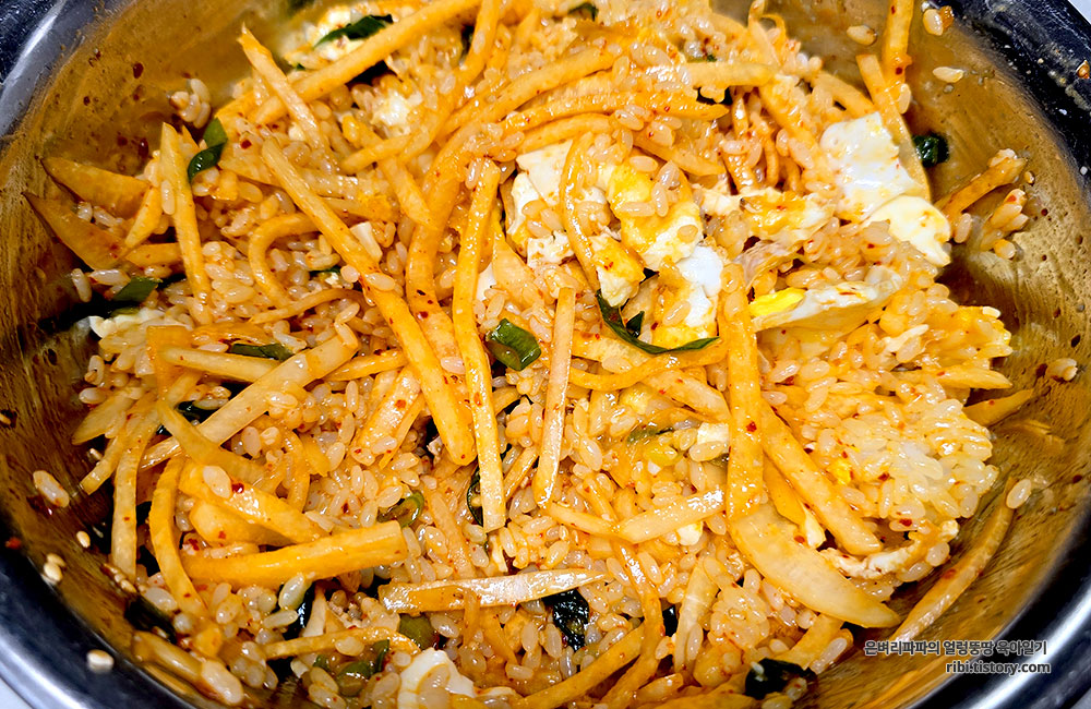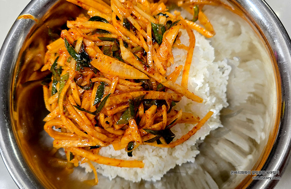 어떻게 처리할까 고민하다가 무생채 비빔밥을 만들어 먹었습니다.