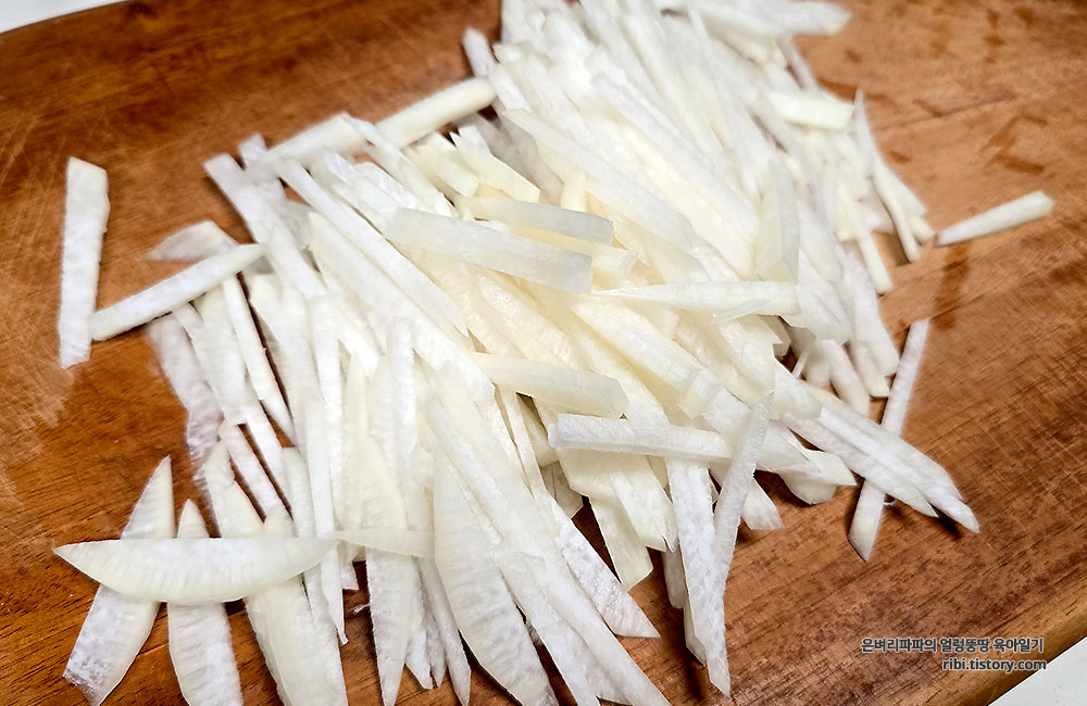 얇고 일정하게 채 썰어 준비합니다.