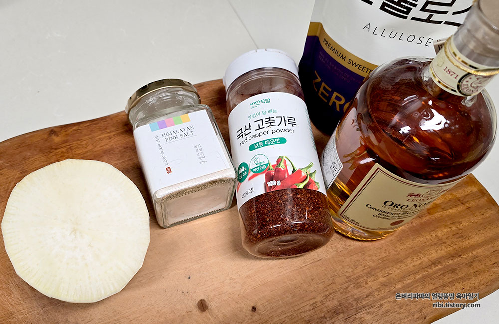냉장고 야채칸 한편에 굴러다니던 자투리 무 하나를 발견했습니다.