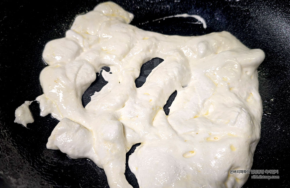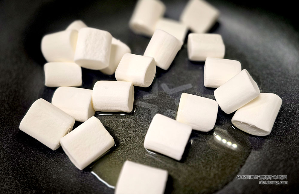 볶음팬에 녹인 버터와 마시멜로우를 넣고 중불에서 잘 섞어주며 녹여줍니다.