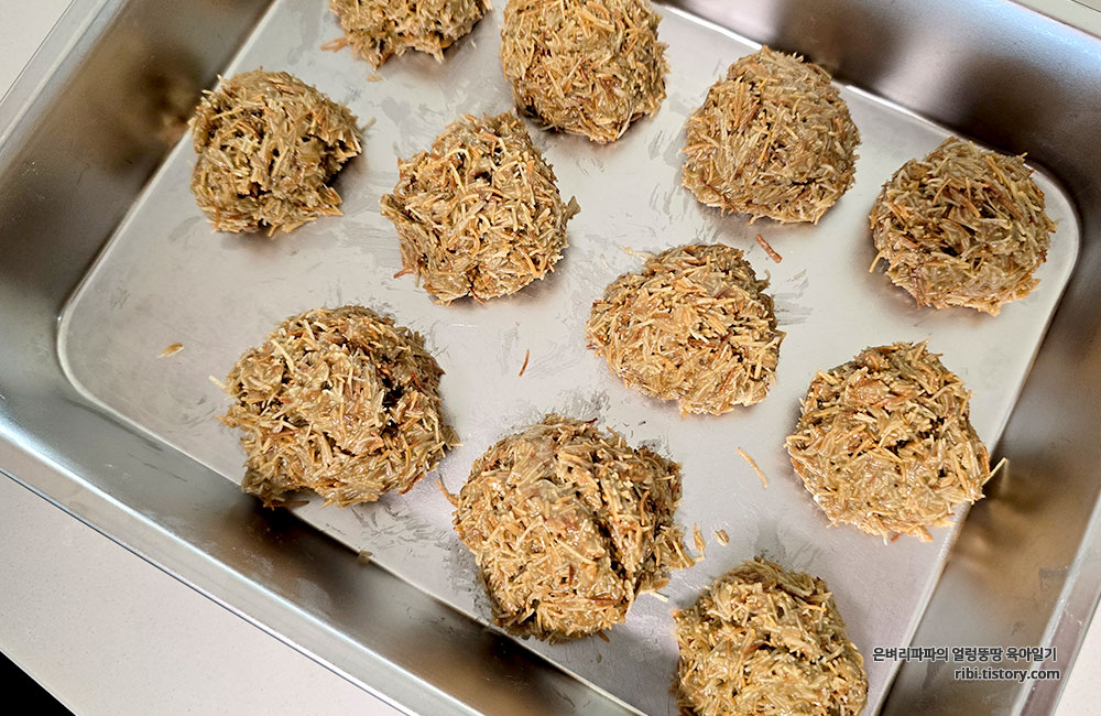 아들 녀석이 만든 필링을 딸아이가 동글동글 쇠똥구리 모양으로 만들었습니다.