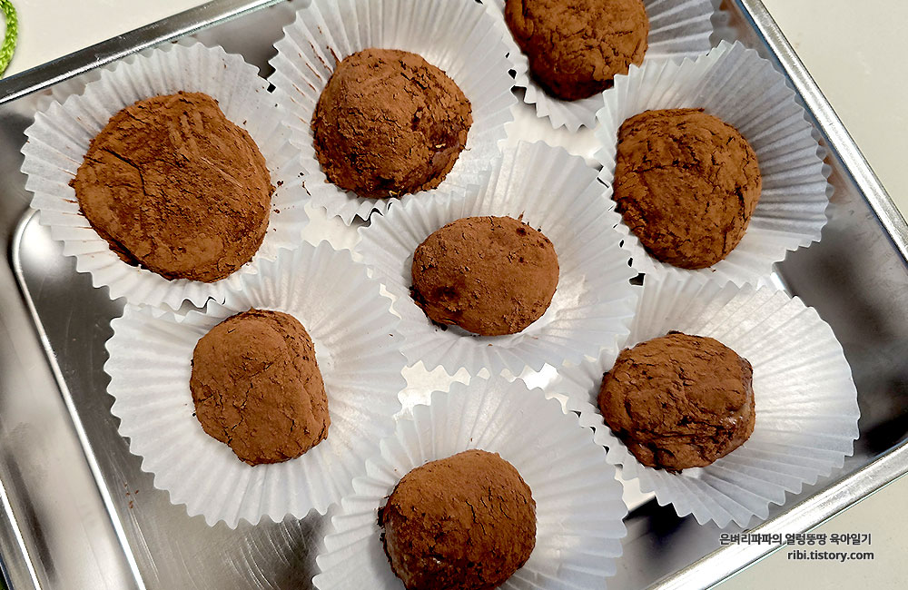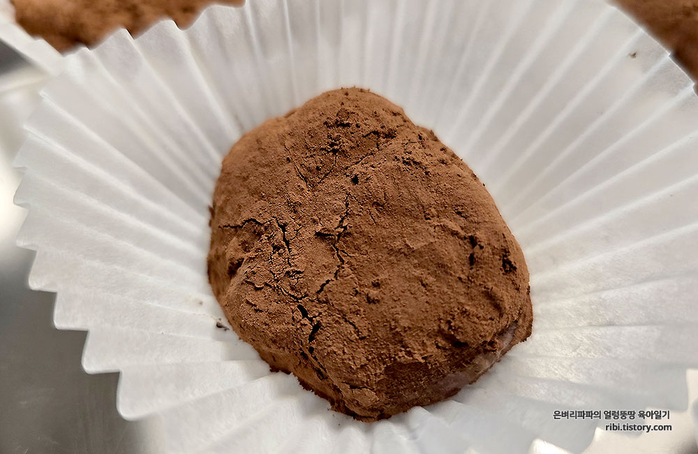 아들과 딸이 하나를 빚어내면, 아빠는 옆에서 마지막으로 코코아 파우더를 입히고