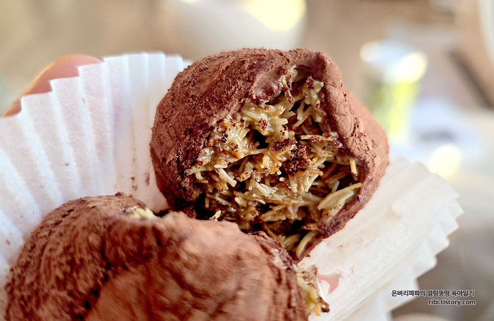 여기에 진한 피스타치오의 고소함과 쌉싸름한 코코아 파우더가 어우러져서,
