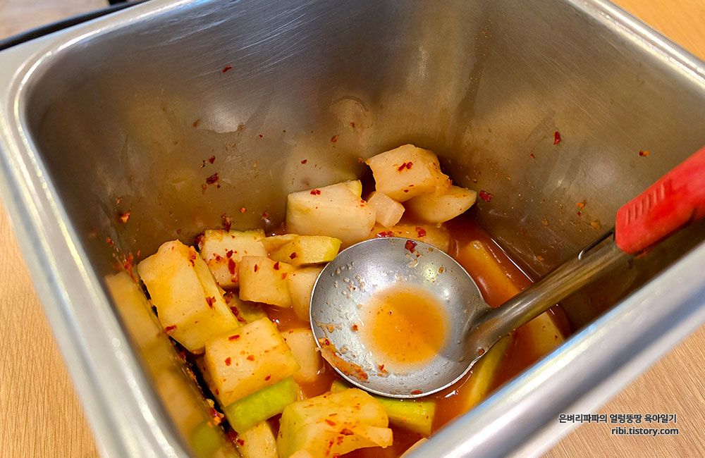 스테인리스 통에 가득 담겨 있어 원하는 만큼 덜어 먹을 수 있어요.