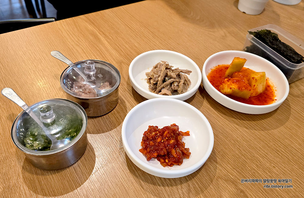 함께 나온 맑은 국물과 깔끔한 밑반찬은