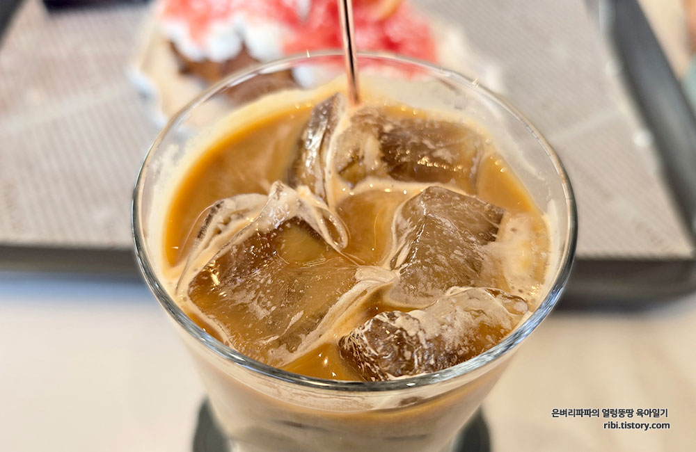 함께 곁들인 시원한 아이스커피는